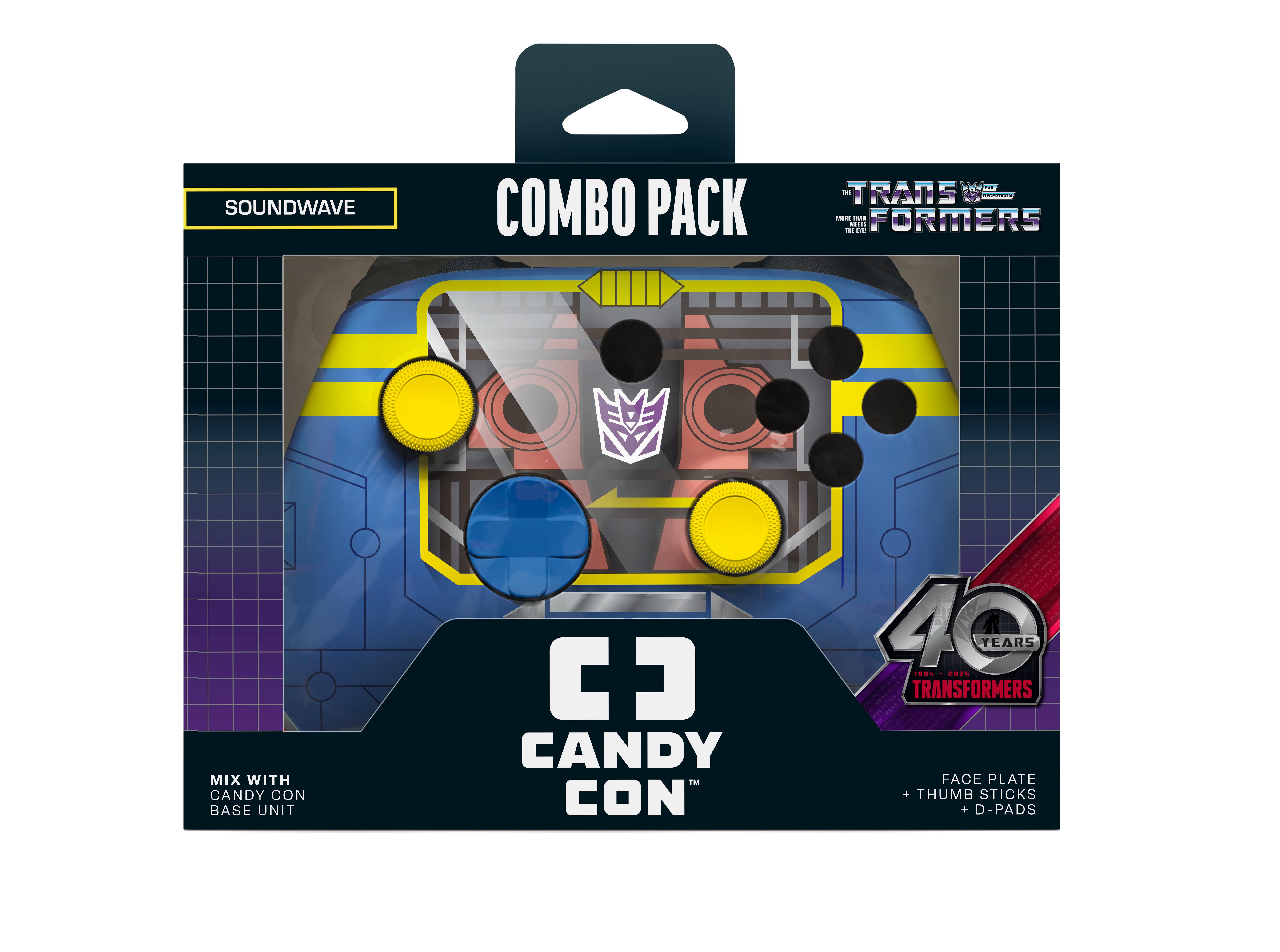 Convert your CANDY CON Controller with this 40th Anniversary G1 Sound Wave Combo Pack! Contains all the parts you need to energize your CANDY CON Base Unit (sold separately) into Evil Decepticon Soundwave!