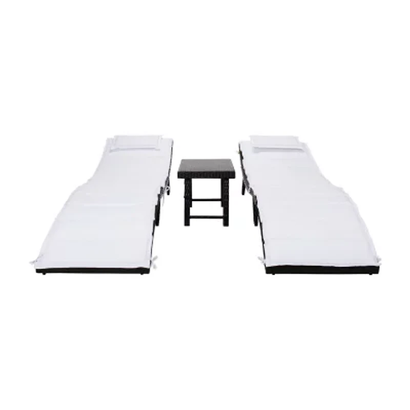 Luxuriate in the summer sun with this Carew 3 Piece Sun lounger Set. The softly flowing elongated silhouettes of Carew's two rattan seats are perfectly topped with plush cushions for maximum relaxation, and a matching end table is ideal for colorful drinks or fresh fruits. Bring artistic dimension to home furnishings with this ideal accent piece that complements any home decor. This is a great addition to your home whether in the countryside or busy city.