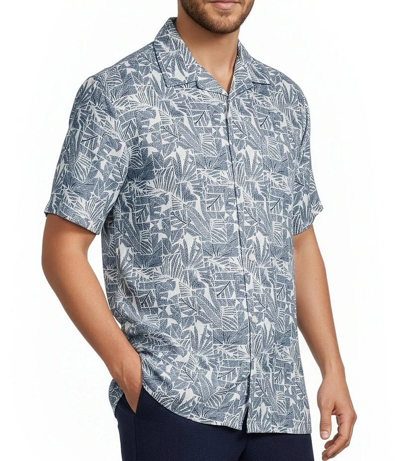Caribbean Geo Leaf Print Short Sleeve Woven Camp Shirt