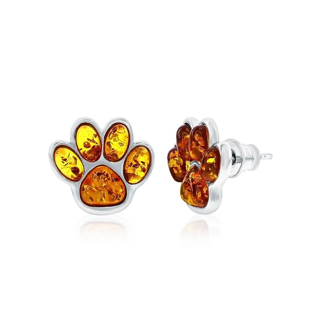 Caribbean Treasures Sterling Silver, Amber Paw Print Studs