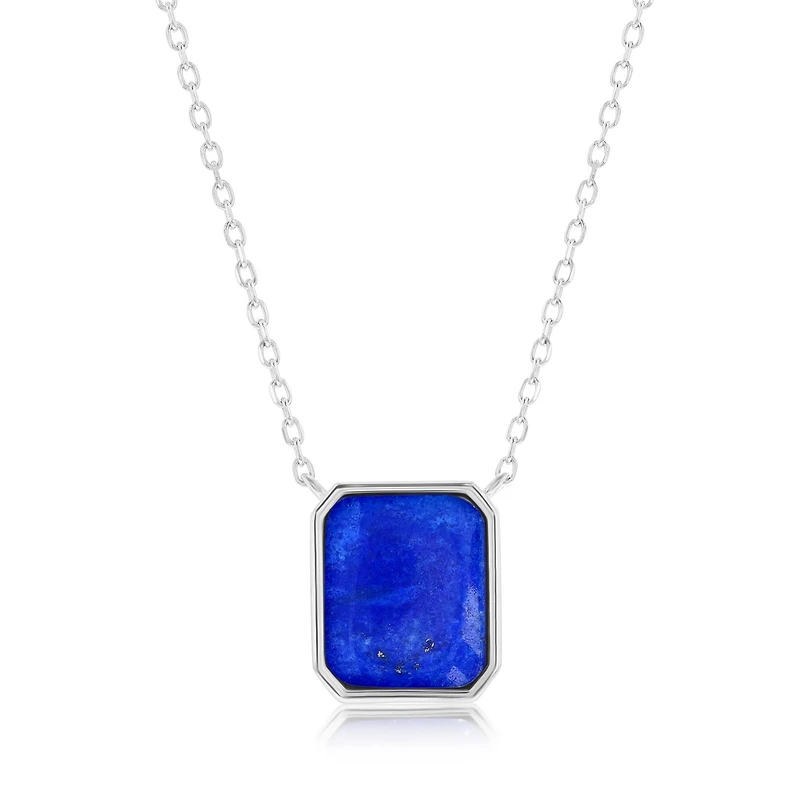 Caribbean Treasures Sterling Silver Rectangle Necklace (Available Lapis, Malachite or Kyanite)