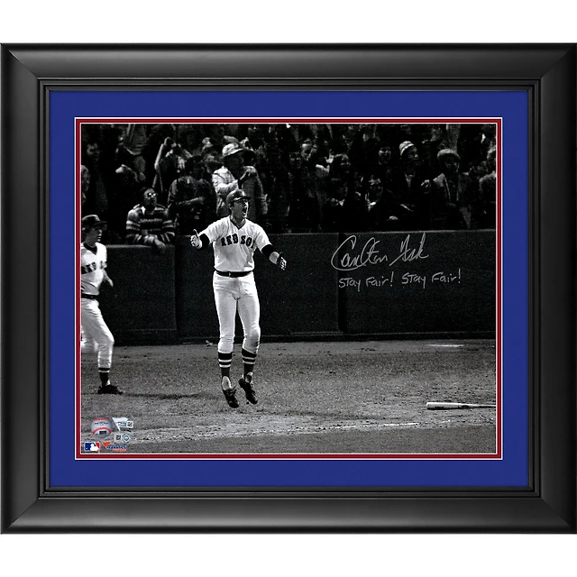 Carlton Fisk Boston Red Sox Framed Autographed 16" x 20" Watching HR Photograph with "Stay Fair! Stay Fair!" Inscription
