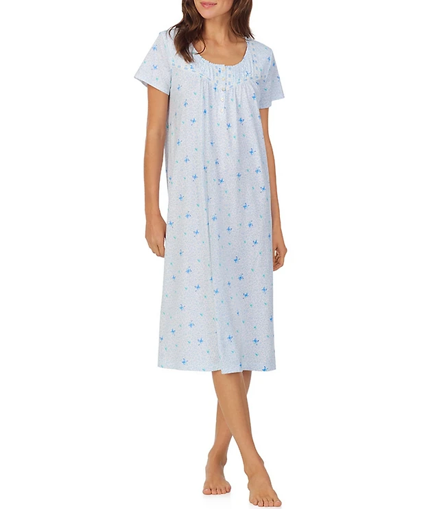 Carole Hochman Floral Print Short Sleeve Round Neck Jersey Knit Short Nightgown