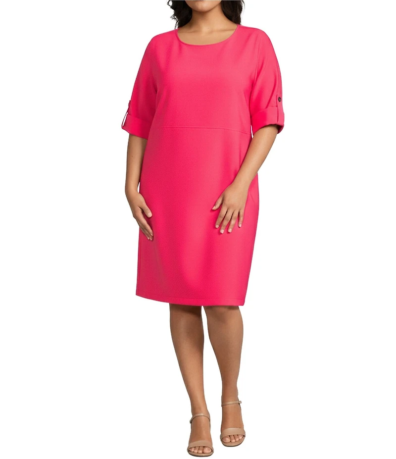 Caroline Rose Plus Tabi Crepe Scoop Neck Roll Tab Elbow Sleeve Dress