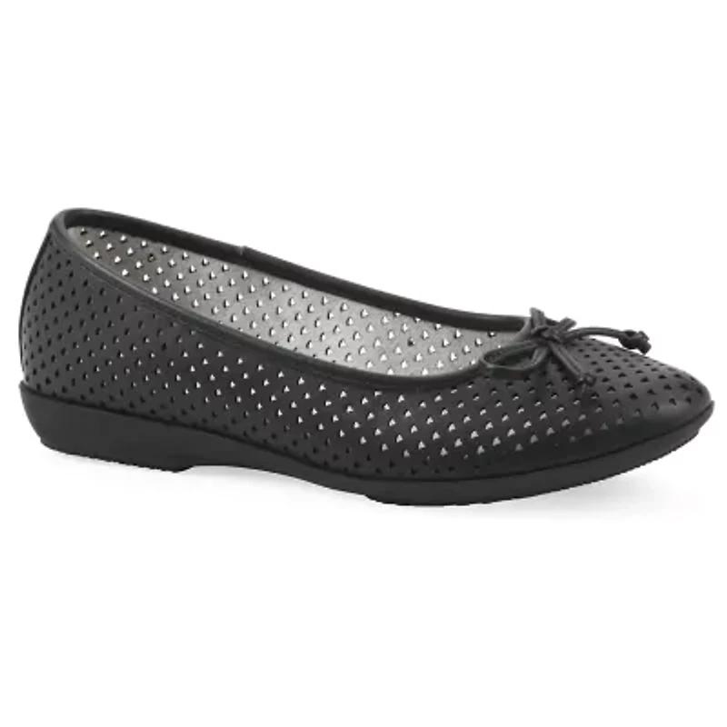 Slip on the classic Carris ballet from Cliffs by White Mountain Shoes. This ballet flat features a dainty bow accent, while the upper is detailed with a perforated design that offers breathability. The cushioned insole will keep your feet comfortable all day, making it perfect for work, weekends, or anywhere in between. Slip-on China Imported Product Specifications 0.75" M Material Synthetic polyurethane