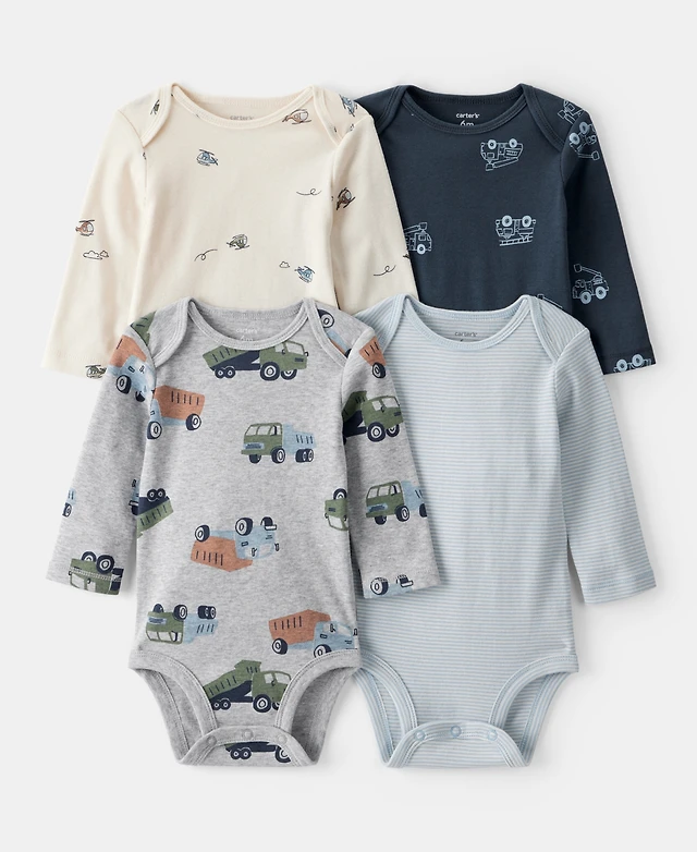 Carter's Baby Boys Construction-Print Long-Sleeve Bodysuits, 4 Pack