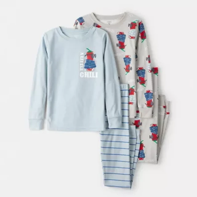 Carter's Little & Big Kid Boys Rib Round Neck Long Sleeve 4-pc. Pajama Sets