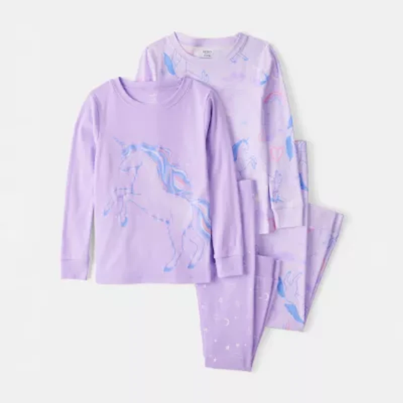Carter's Little & Big Kid Girls Rib Round Neck Long Sleeve 4-pc. Pajama Sets