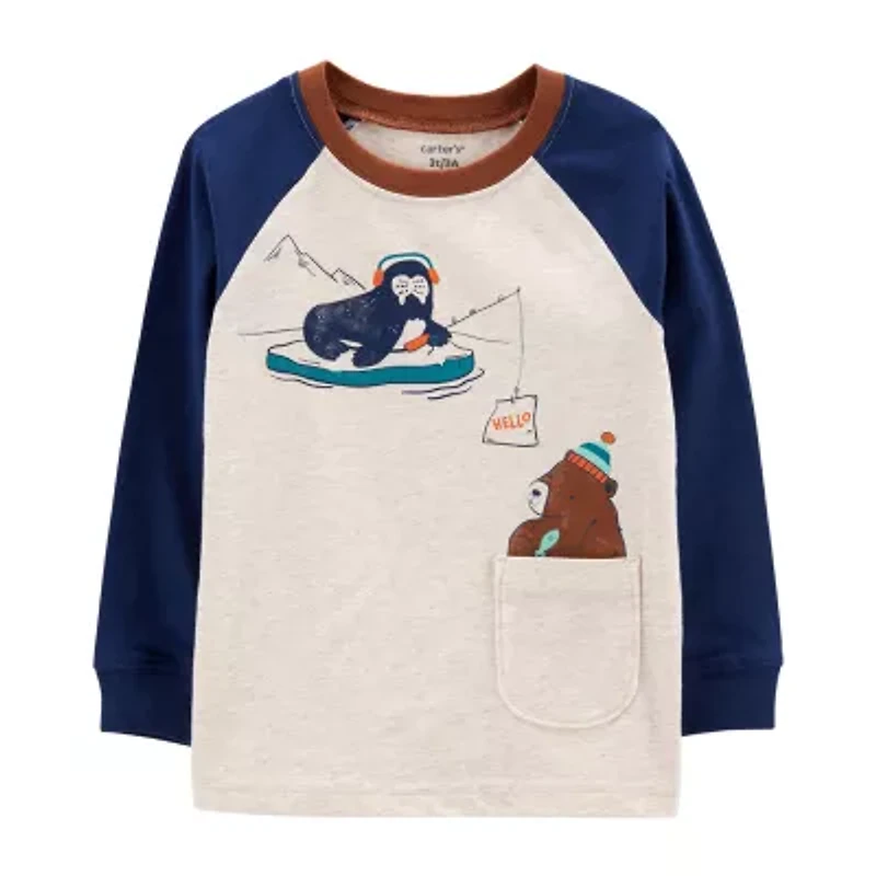 Carter's Toddler Boys Crew Neck Long Sleeve Regular Fit Graphic T-Shirt