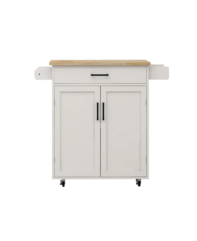 Casainc Rolling Kitchen Island Cart with Drawer, Cabinet, Rack and Rubber Wood Top