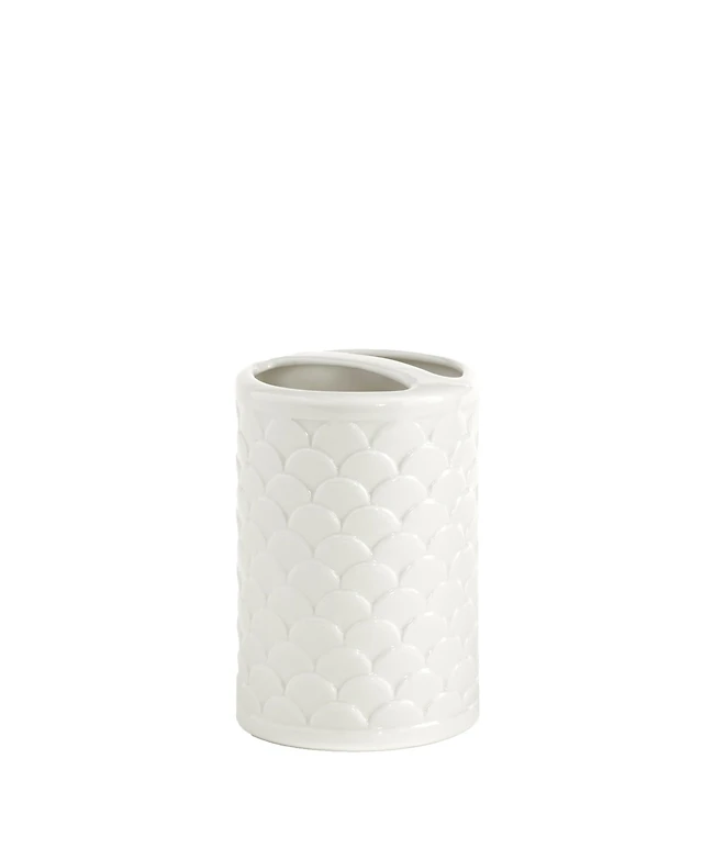 Cassadecor Embossed Wicker Design Porcelain Toothbrush Holder