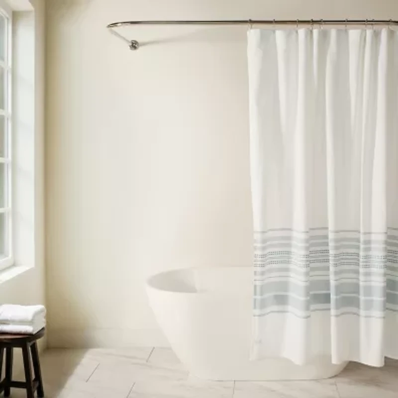 Timeless stripes and prints meet everyday function in our yarn-dyed cotton blend shower curtain. The soft woven texture and subtle color variations create a relaxed yet refined look. Durable and easy to care for, it's a polished, versatile layer that complements both modern and traditional bathrooms.