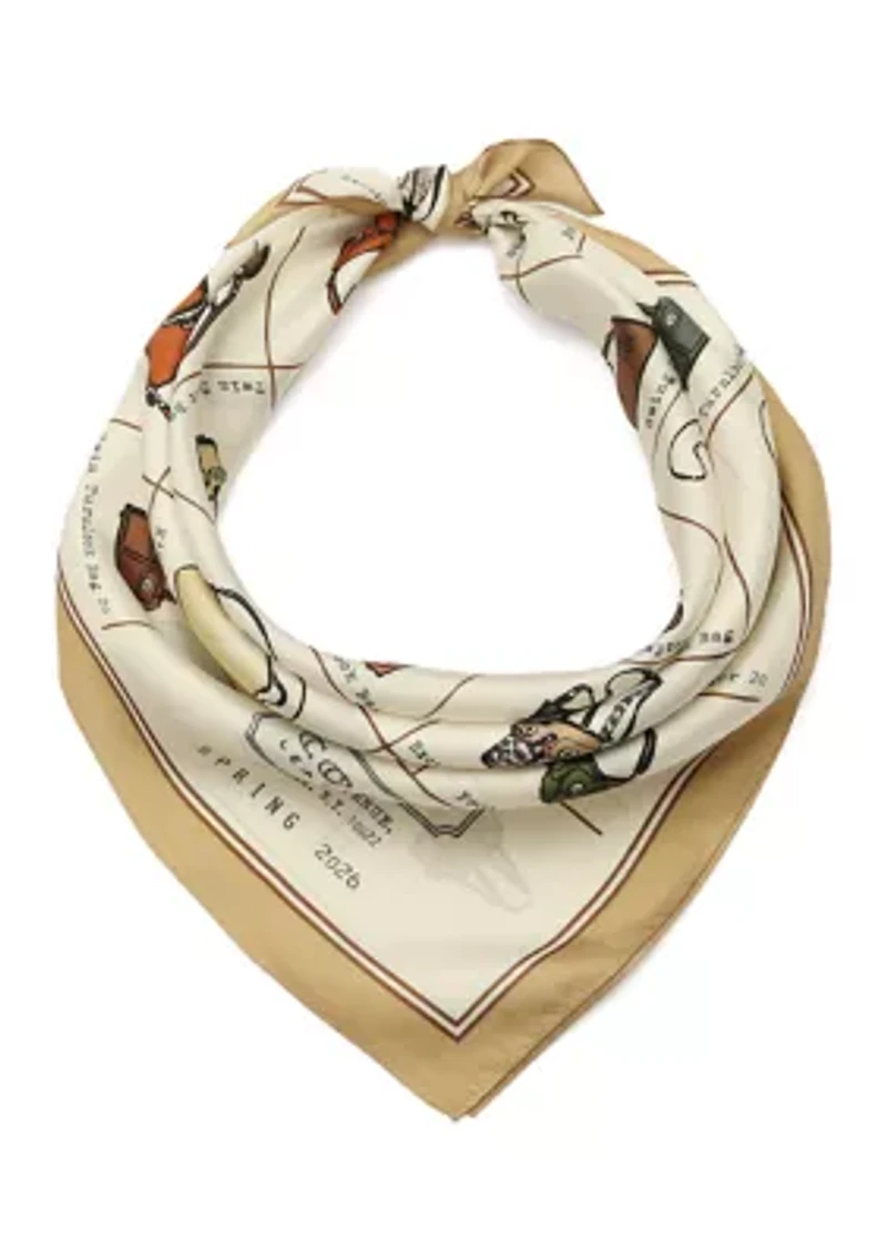 This COACH silk bandana features a smooth, luxurious feel with crisp, detailed artwork that stands out beautifully. Imported Product Specifications 23" x 23" Material & Care 100% silk Dry clean only