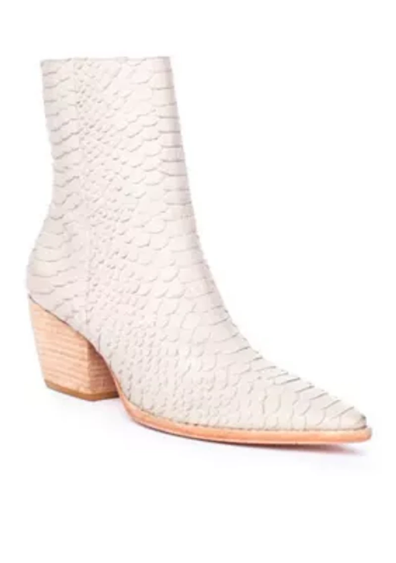 A legacy style, western-inspired modern ankle boot with a pointed toe. Zip closure Pointed toe Padded insole Brazil Imported Product Specifications 2.5 in / 6.35 cm .25 in / .64 cm 7in/17.78cm 9.5in/24.13cm M Material & Care Textile lining, Textile, Man Made, Leather Leather Wipe clean