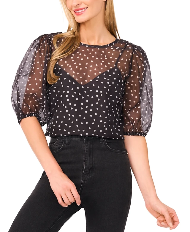 CeCe Women's Balloon Short Sleeve Crew Neck Top