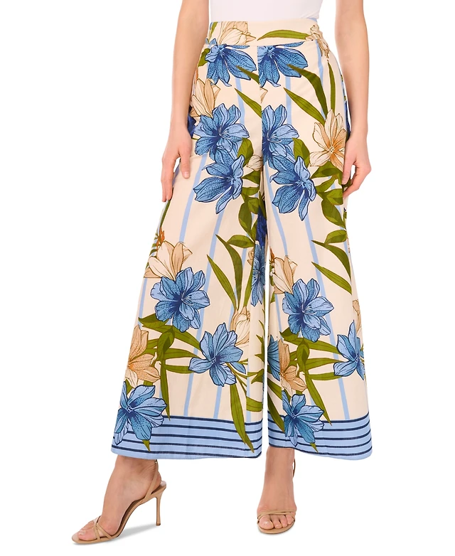 CeCe Printed Wide Leg Pull On Pants