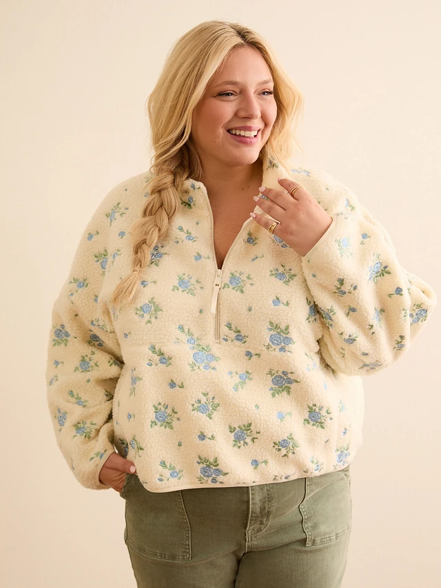 Demetra for Aero Floral Full-Zip Sherpa Jacket