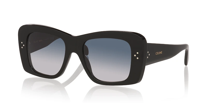 The Celine 3 Dots CL40321I sunglasses bring bold sophistication to everyday style. These irregular black sunglasses stand out with a unique, asymmetrical design and a polished black acetate build. Grey gradient lenses add a refined touch, offering effortless versatility for any look. Perfectly crafted for those who embrace distinctive elegance.