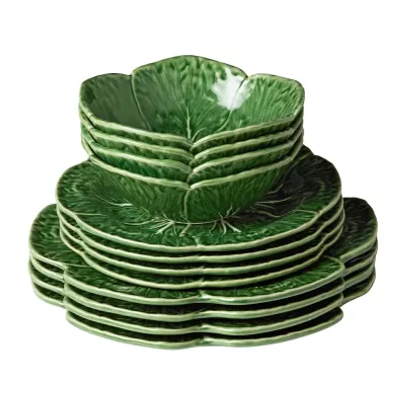 Bring the vibrancy of the garden to your table with the Le Jardin Cabbage 12-Piece Dinnerware Set, a whimsical collection designed for spring and summer dining. Sculpted in the likeness of cabbage leaves, each stoneware piece blends artisanal craftsmanship with seasonal charm, capturing the texture, depth, and beauty of nature. Rich green hues and a glossy glaze add brightness to every meal, making this set as functional as it is eye-catching. Complete with dinner plates, salad plates, and bowls, it offers everything you need for seasonal entertaining or everyday use. Microwave and dishwasher safe, it delivers modern convenience alongside rustic appeal. Style it with woven chargers, linen napkins, or floral centerpieces for a curated tablescape that delights guests at Easter brunches, garden lunches, or summer dinners. As part of the Le Jardin collection, it coordinates effortlessly with other pieces, celebrating seasonal dining with whimsy and elegance year after year.