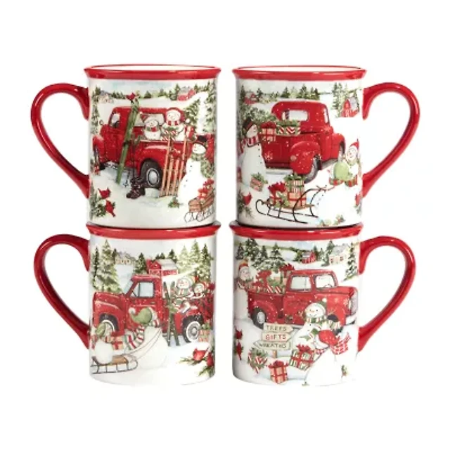 Certified International Red Truck Christmas 4-pc. Coffee Mug