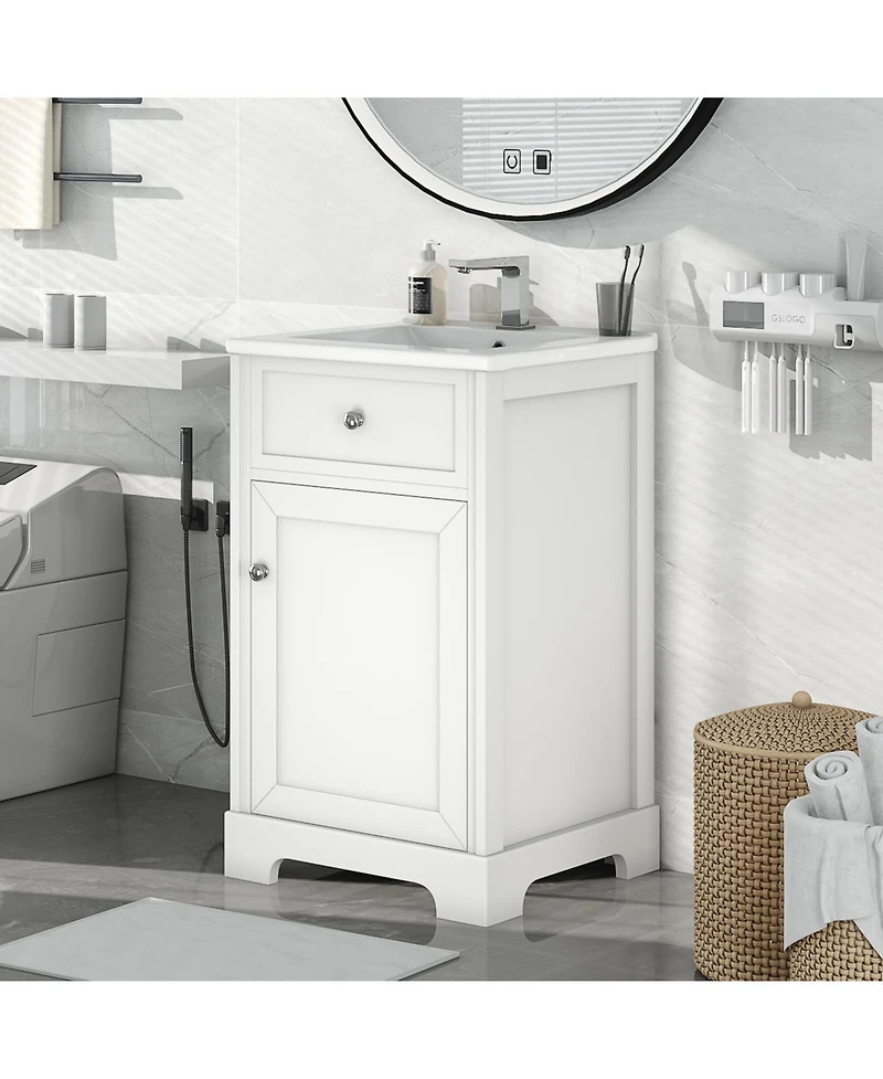 Upgrade your bathroom with a vanity that's as smart as it is stylish! This 20-inch Bathroom Vanity with Sink combines a durable painted Mdf and real wood build with a spacious, easy-clean white ceramic basin. It offers exceptional organization with a soft-closing cabinet door, two-tier interior rack, and an adjustable shelf—perfect for keeping all your essentials tidy and dust-free. Designed for small spaces, this vanity delivers modern functionality and lasting quality, making it an ideal choice for powder rooms, guest baths, or apartment renovations.