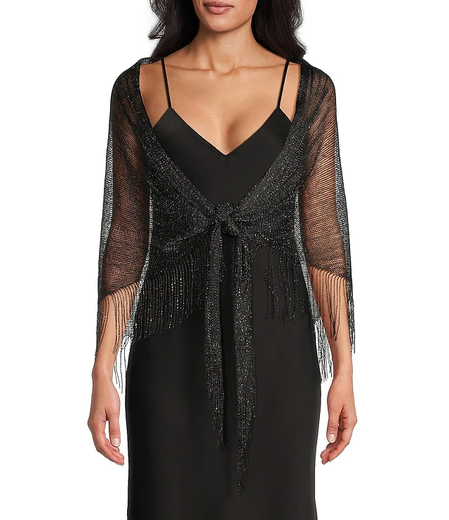 Alex Evenings Illusion Round Neck Sleeveless Embroidered Lace Shawl A-Line Dress