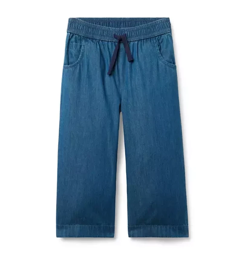 Easy, breezy and ready to pair with everything. Our pull-on pant in soft chambray has a chic wide leg silhouette, drawstring waist and pockets for all the little things. 100% Cotton Chambray Elasticized Waist Functional Drawstring Front And Back Pockets Now Including Tween Sizes Up To 16 Machine Washable; Imported