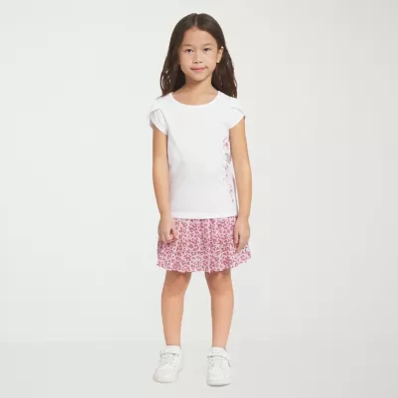 The Champion Little Girls 2-Piece Printed Skort Set lets her get dressed in an instant. This 2-piece set for girls includes a short-sleeve tee and a pleated skort. Designed with style and comfort in mind, the girls' logo tee is made from cotton-blend jersey, and the girls' printed skort is made from breathable mesh with built-in shorts. It's sure to become her outfit of choice for busy on-the-go days.