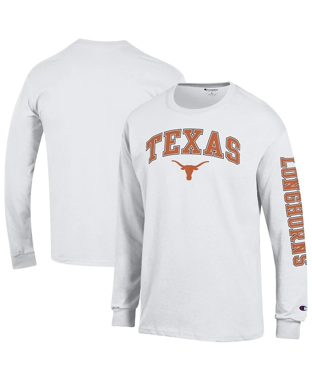 Champion Men's White Texas Longhorns Arch Over Logo 2-Hit Long Sleeve T-Shirt