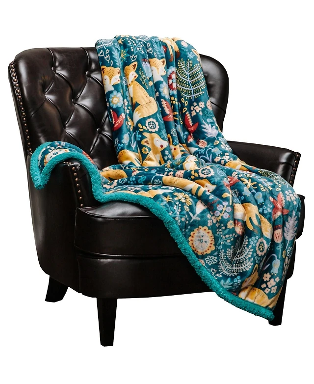 Linery & Co. Velvet Plush Reversible Sherpa Lodge Printed Throw Blanket