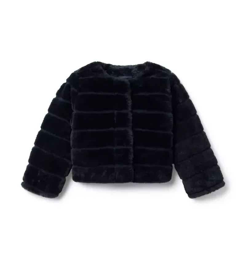 Styled up or down, our cozy faux fur jacket is always an outfit maker. Crafted with channel quilting and pockets for the little things. 100% Polyester Faux Fur; Lining: 100% Polyester Fully Lined Long Sleeve Button Front Front Pockets Machine Wash, Gentle Cycle; Imported