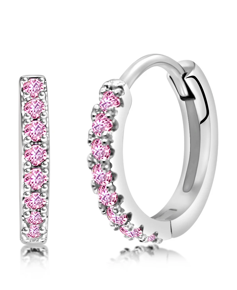 Chanteur Girls /Girl/Round Crystal White Gold Palladium Plating Pink Crystal Huggie Hoop Earrings in Franklin, TN