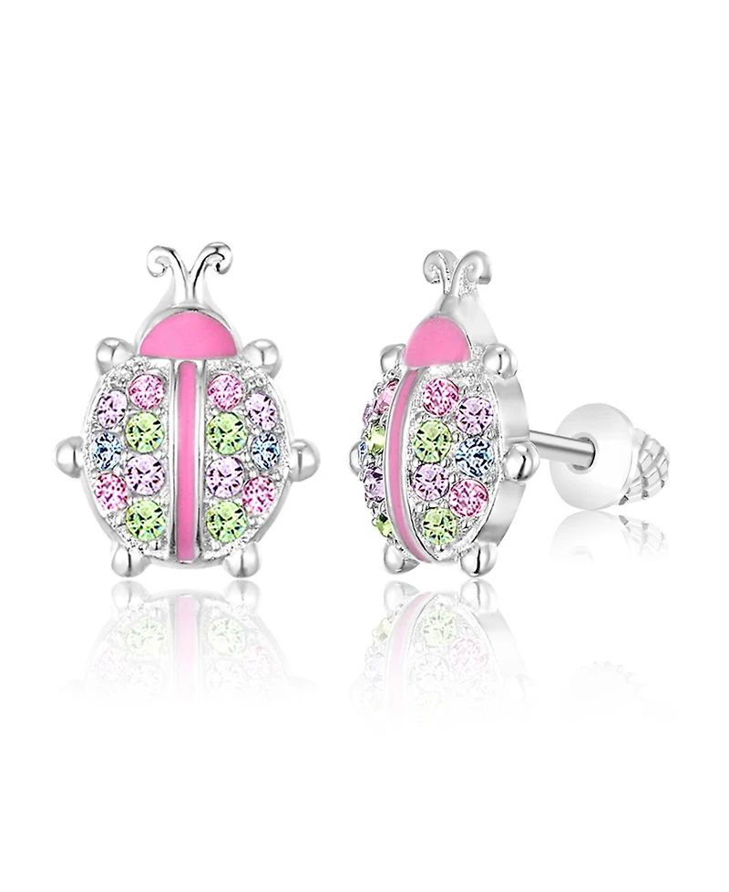 Chanteur/Girl/Ladybug Crystal White Gold Palladium Plating Screwstud Earring