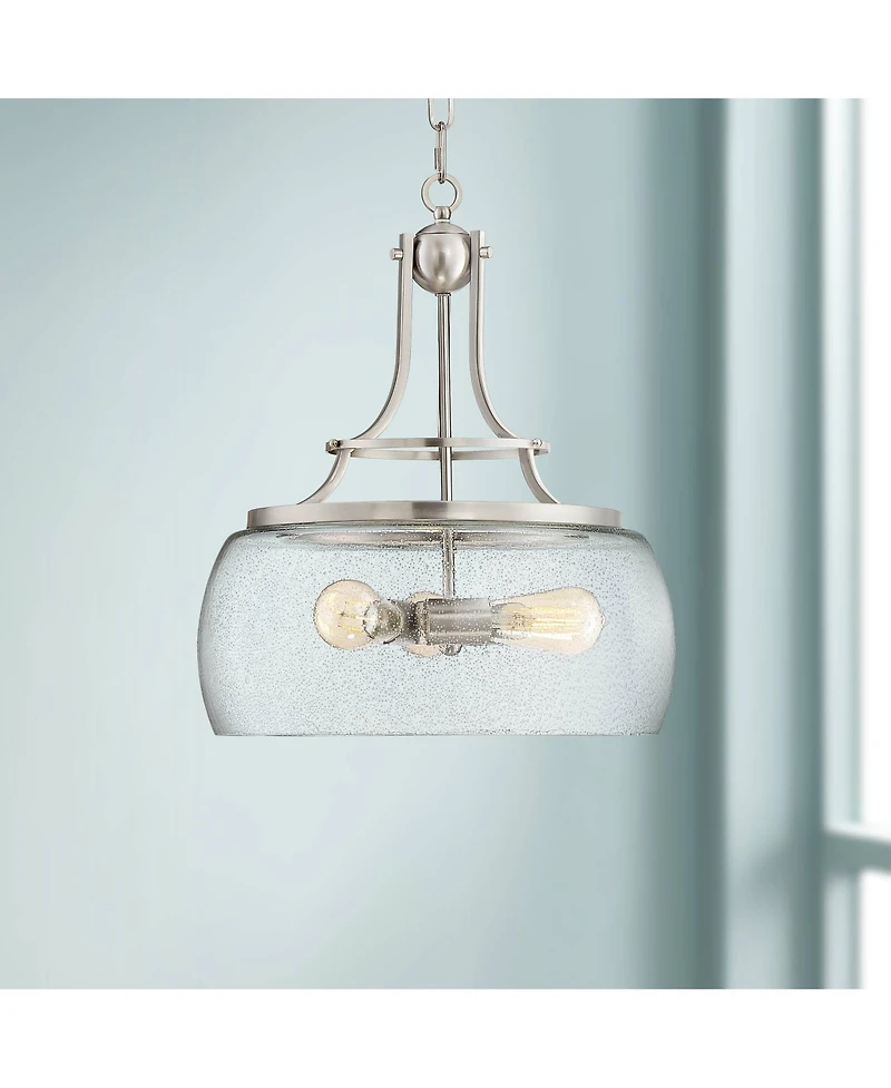 Charleston Satin Nickel Pendant Chandelier 16" Wide Rustic Farmhouse Seeded Clear Glass Led 3-Light Fixture for Dining Room House Foyer Entryway Kitch