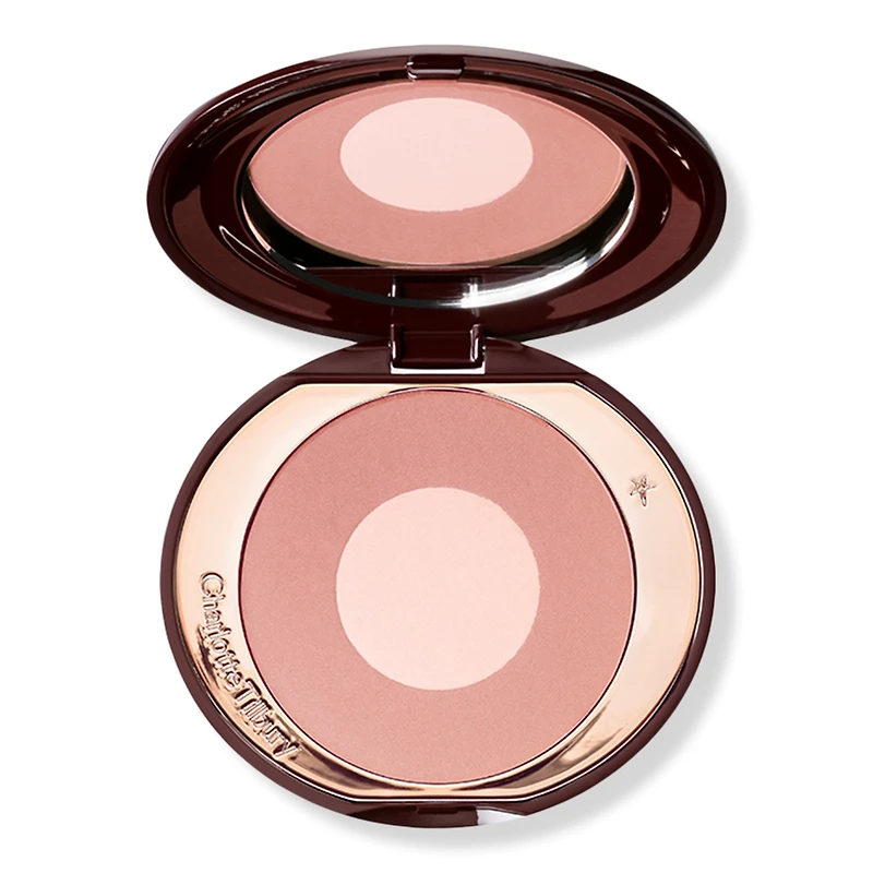 CHK TO CHIC LOVE IS THE DRUG. Benefits: Richly pigmented for long-lasting wear, Charlotte Tilbury's two-step application blush will brighten any complexion. The shades are buildable so you can adjust the color suit your look.. The formula is blendable and colors are uniform. Swish the outer shade across cheekbones to sculpt, then dab the inner color on the apples of your cheeks for a pretty, youthful glow.. Features: Light Flex Technology captures light and re-emits it for a luminous complexion.. Color-rich pigments are rolled into finely crushed pearls that smooth and buff the skin for excellent blendability and uniform color.. The formula is buildable for the perfect, healthy, even glow.. :
