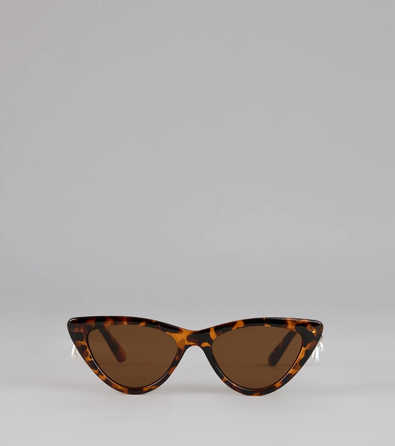 Serving instant trendy energy, these tortoise cat-eye sunnies come with tiny pearl charms that sway every time you turn your head—aka extra drama in the cutest way.