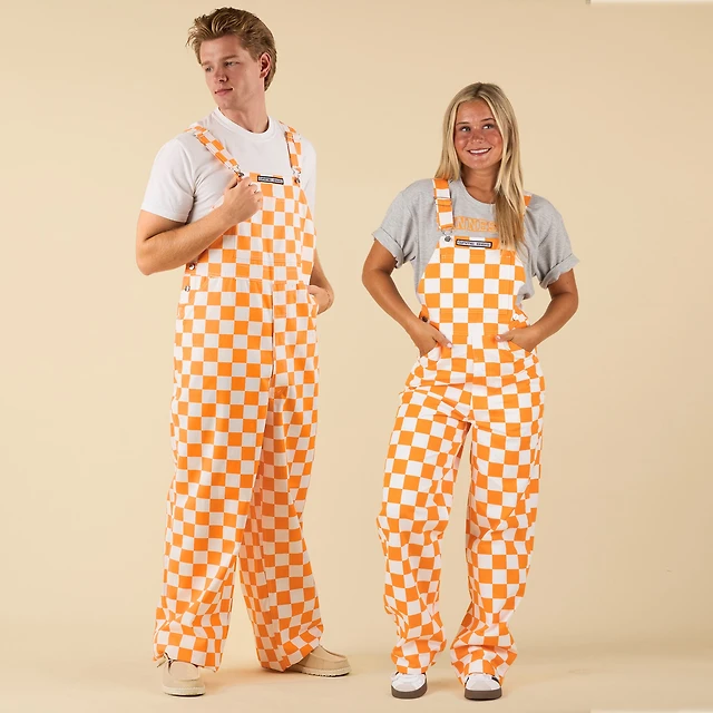 Checked Orange and White Overall Bibs