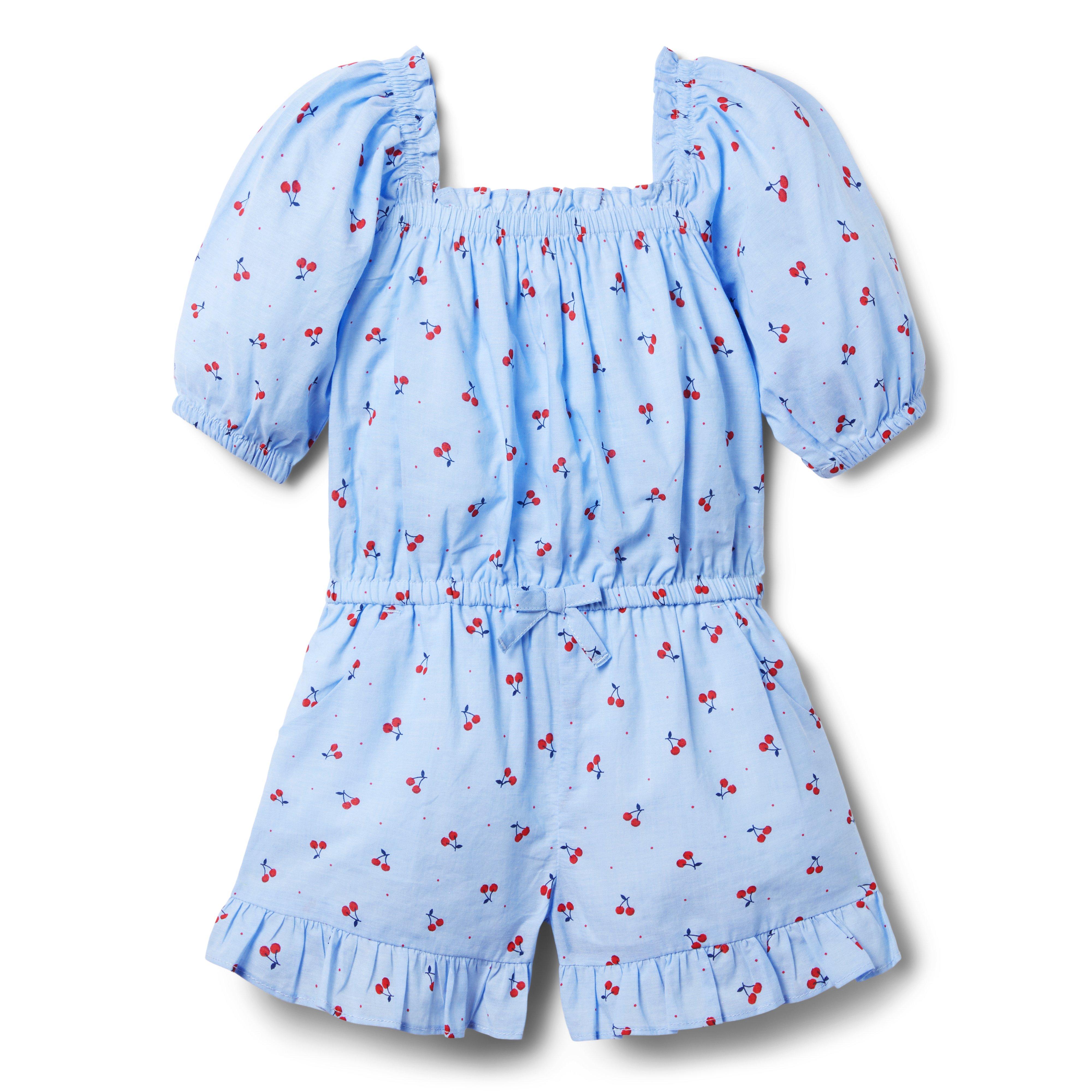 A one-and-done look to sweeten any day. Our cherry print romper with details to love, like puff sleeves and a ruffle hem, plus pockets for the little things. All in an easy pull-on style. 100% Cotton Batiste Fully Lined Short Sleeve Elasticized Waist; Tie Waist Detail Front Pockets Matching Family Styles Available Online Exclusive Machine Washable; Imported