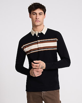 Chest Striped Premium Weight Rugby Long Sleeve Polo