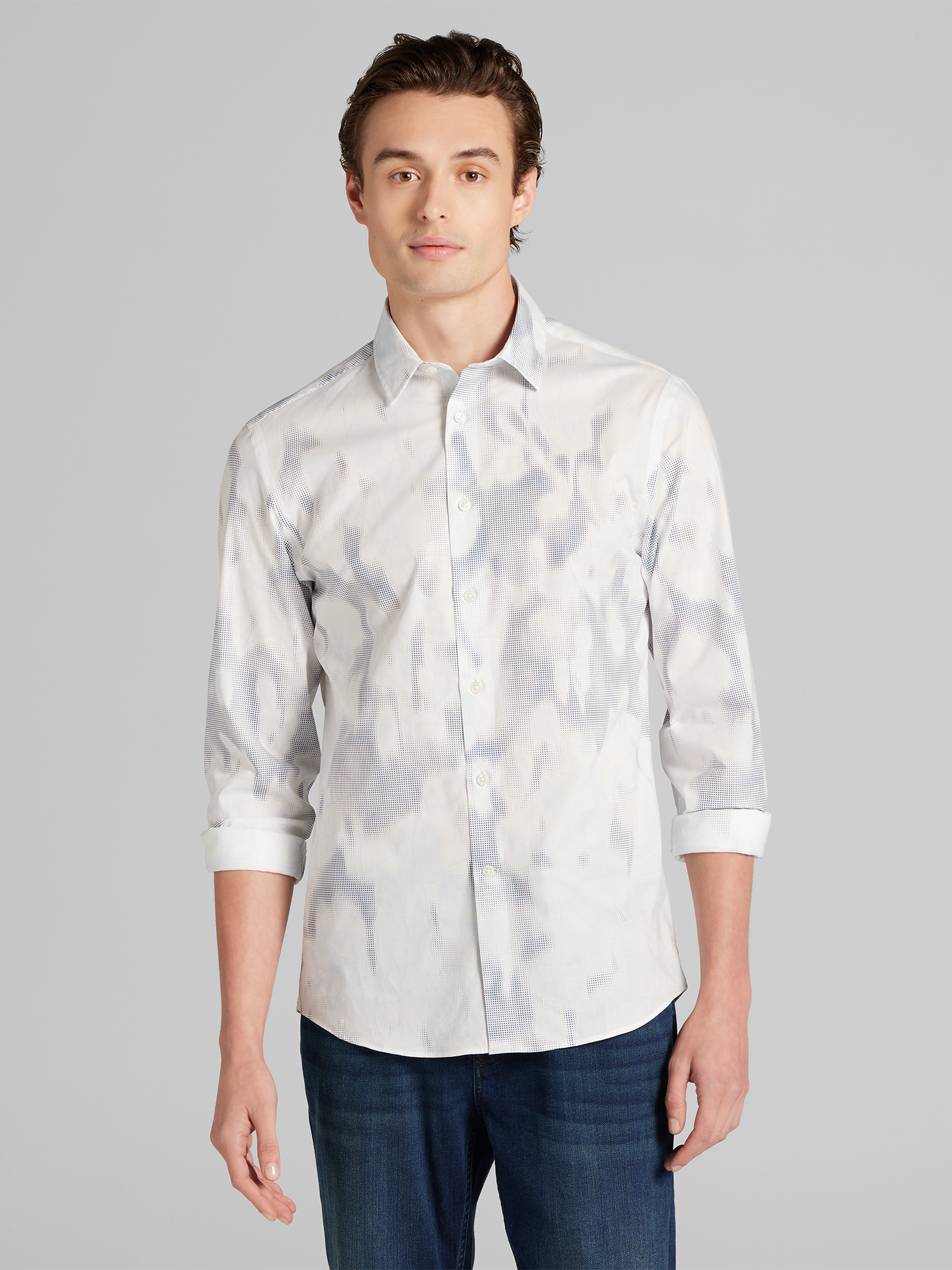 • Spread Collar, Button Up, Slim Fit
