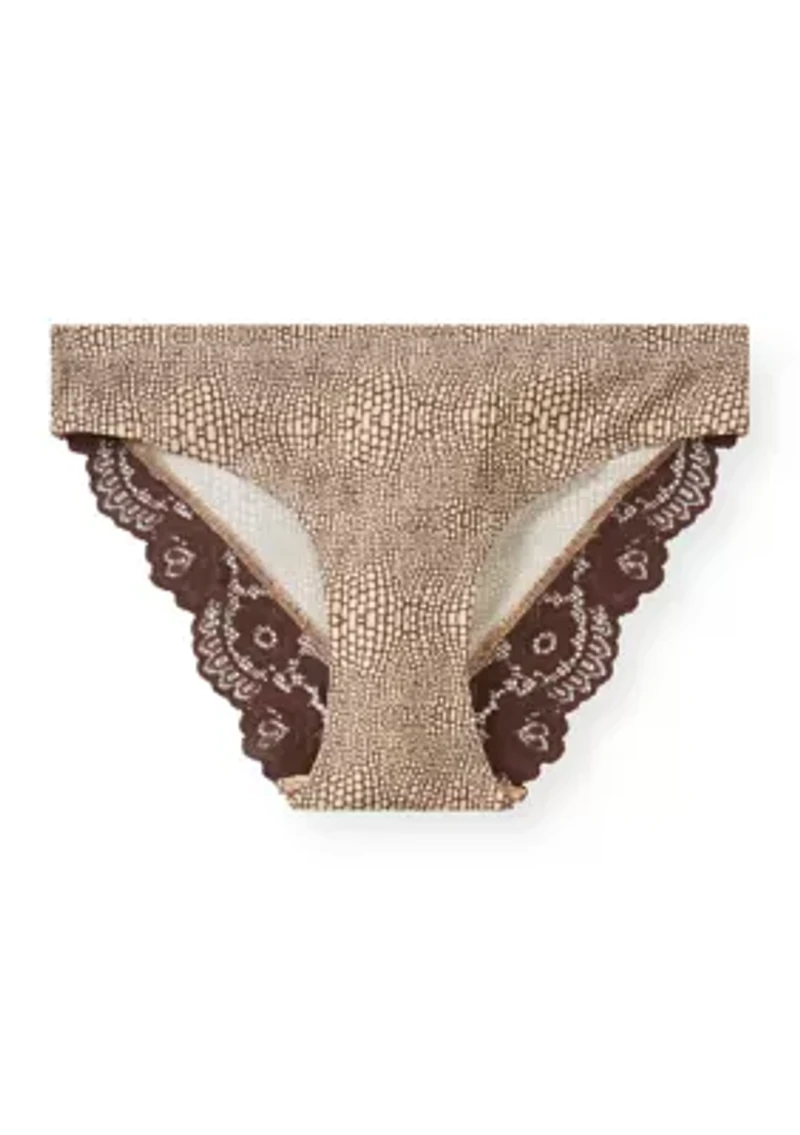 Lace detailing adds a hint of romance to these printed bikini-style panties from Parisian. Elastic waistband Tag-free Imported Belk Exclusive Material & Care Nylon, spandex Machine washable