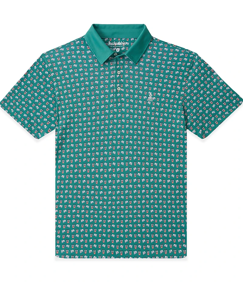 From Chubbies, this polo features: Structured polo collar Short sleeves Lightweight Breathable Moisture-wicking Anti-static Anti-bacterial Drier, lighter, and more crisp feel than the classic performance polo Sandwich and drink print Pullover construction Polyester/spandex Machine wash/tumble dry Imported.