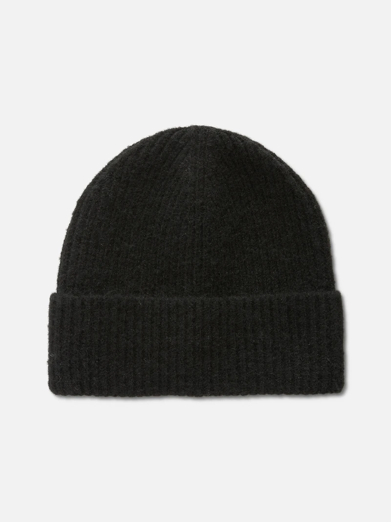 This beanie comes in a chunky, ribbed texture with a turned up cuff