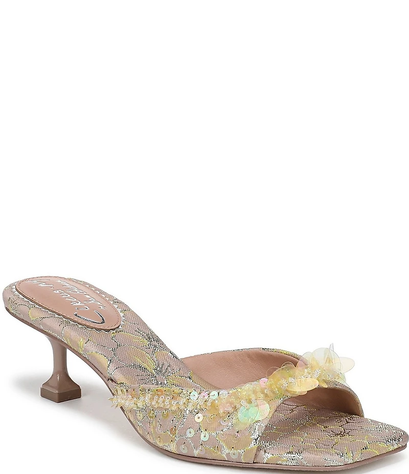 Circus NY by Sam Edelman Juliana Floral Satin Sequin Ornamented Dress Slide Sandals