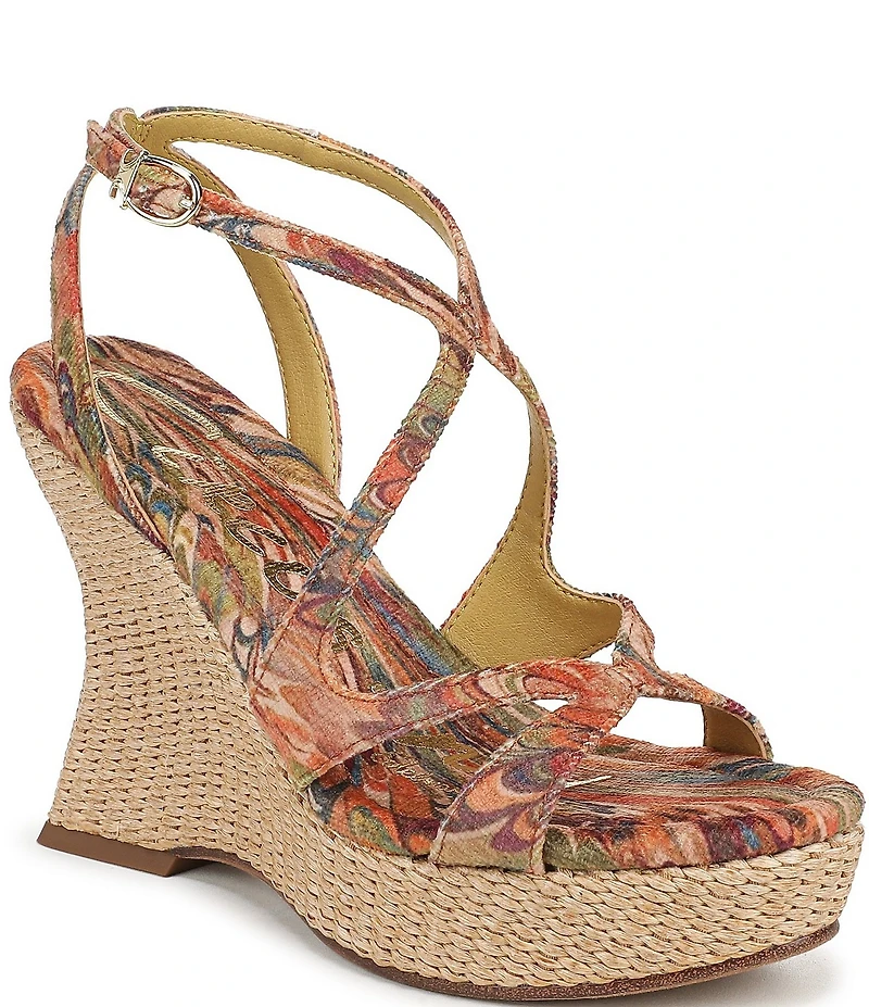 Circus NY by Sam Edelman Trina Peacock Print Tapestry Fabric Ankle Strap Platform Wedge Sandals