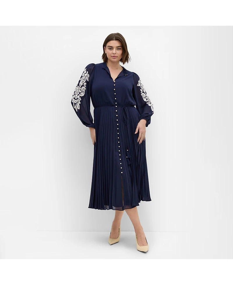 City Chic Women's Plus Adorn Sleeve Pleat Midi Dress