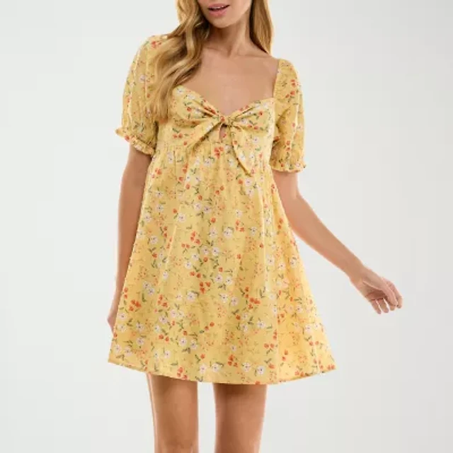 Arizona Womens Juniors Short Sleeve Floral Fit + Flare Dress