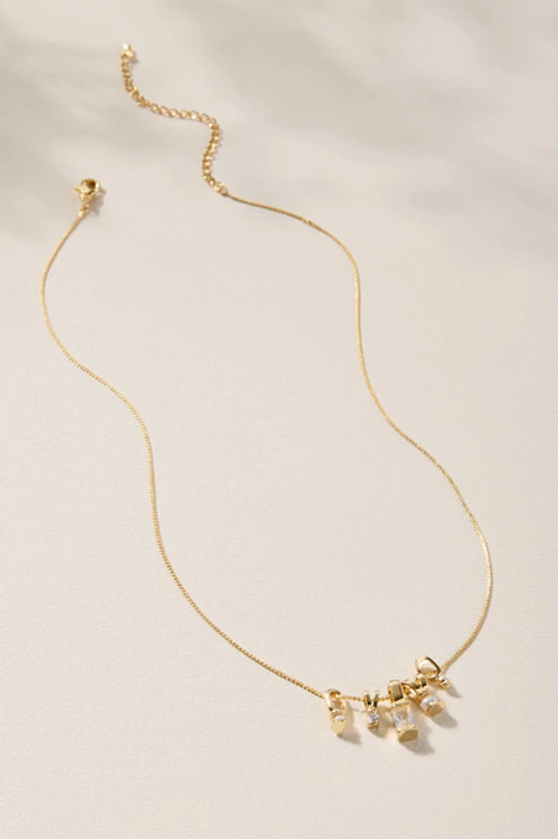 Features five unique crystal-cut charms on a delicate gold chain.