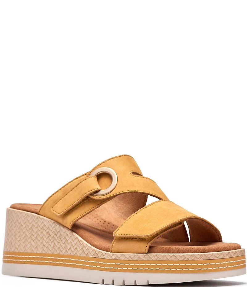 Clarks Artisan Kidiki Cove Nubuck Suede Platform Wedge Slide Sandals
