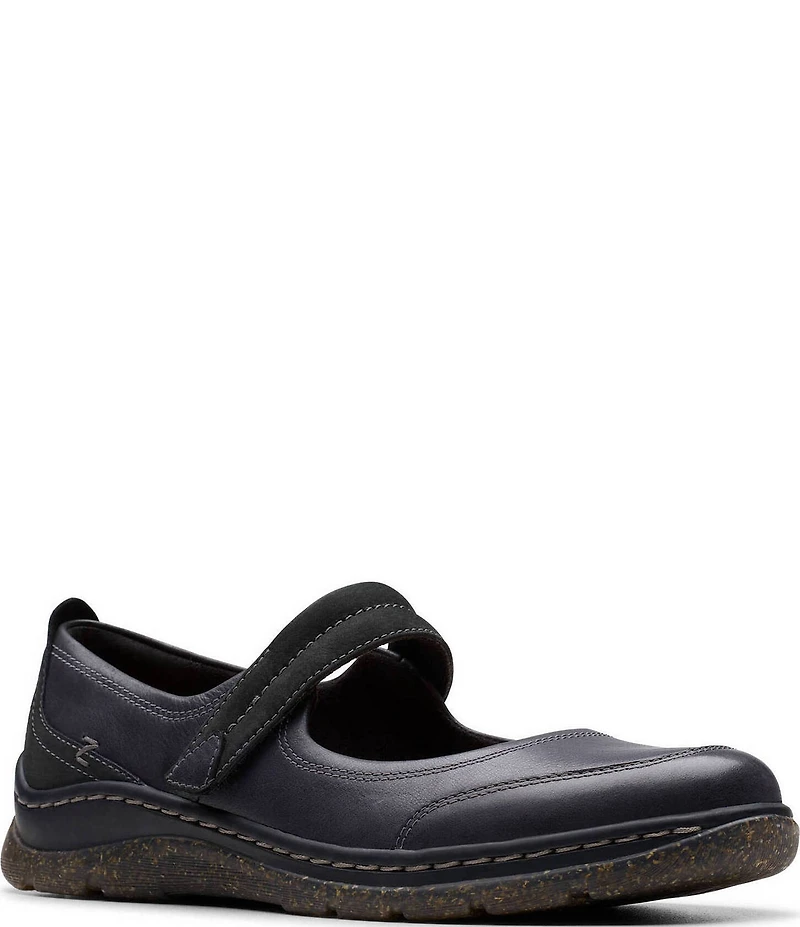 From Clarks Artisan, the Orlene Jane Leather Ballerina Mary Janes feature: Leather upper Side stitch detail Adjustable hook and loop Mary Jane strap Fabric lining Molded Contour Cushion footbed Rubber blend outsole Approx. 1.75" heel height Imported.
